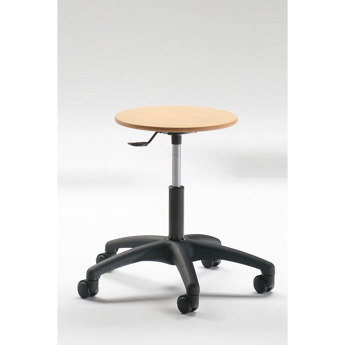 Sgabello con Seduta Tondello in faggio - base a cinque razze in polimero plastico con ruote - Professionale