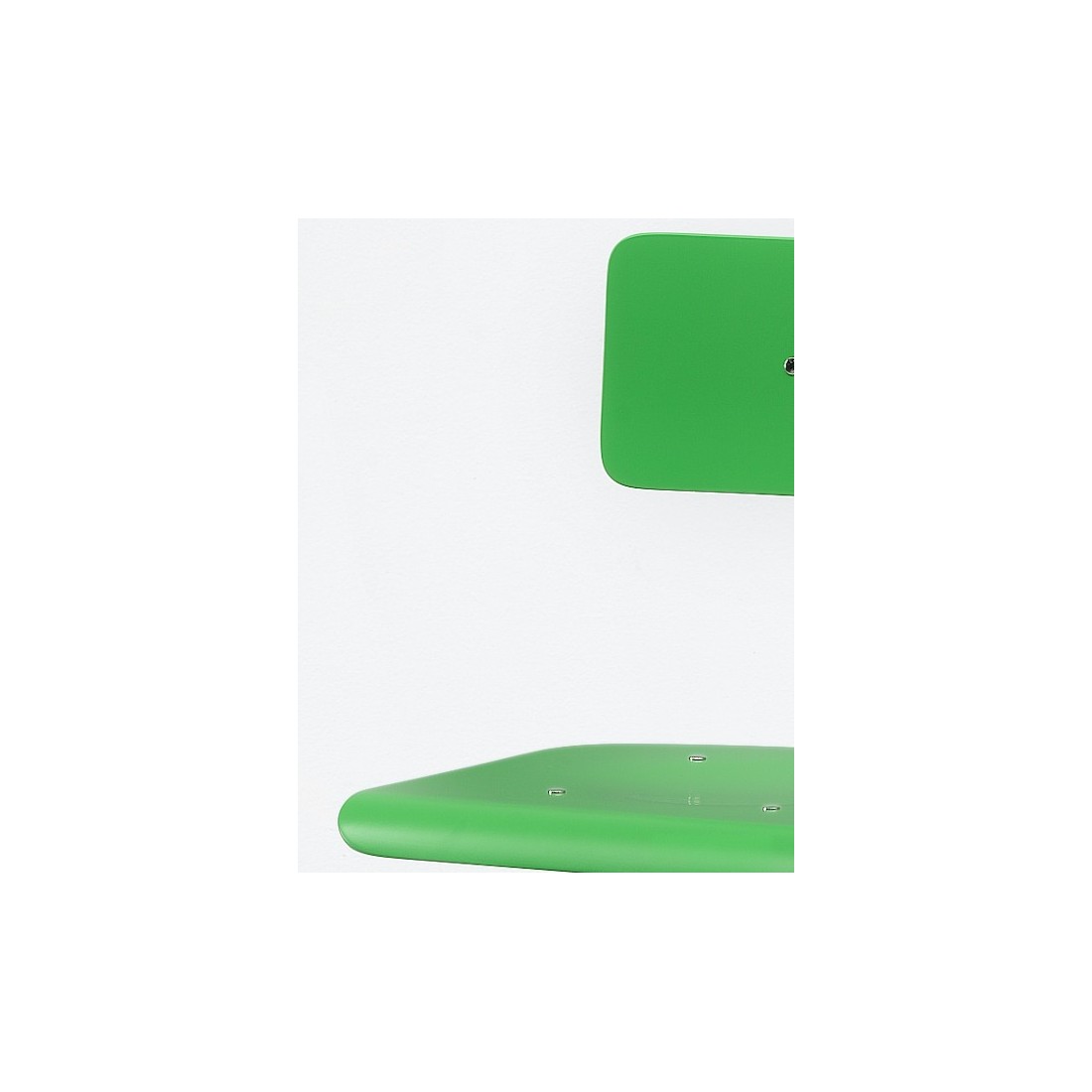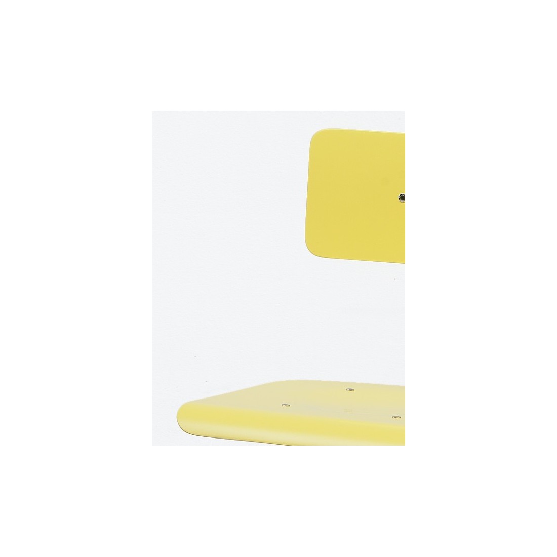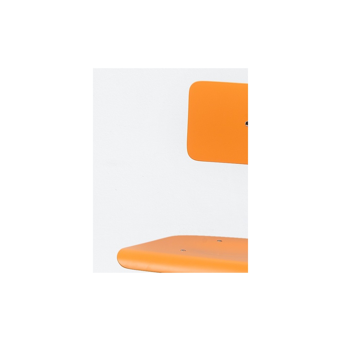 Sedile e schienale in faggio laccato colorato, supporto schienale in acciaio verniciato, schienale regolabile.