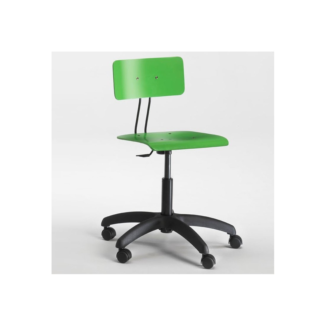 Sedia con schienale e base a cinque razze in polimero plastico con ruote.